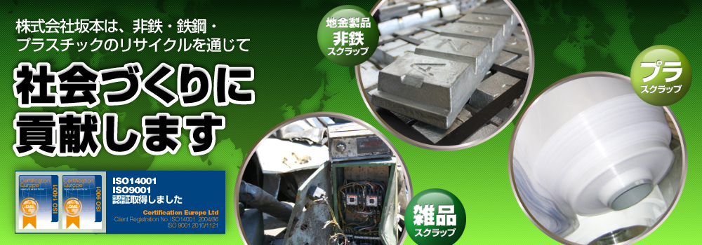 株式会社坂本は大阪府堺市に本社および工場を設けており、関西の広いエリアで非鉄・プラスチック等のスクラップの買取を行っています。大阪のスクラップ買取は当社にお任せください。
