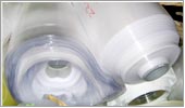 フィルムPEはポリエチレンの略称です。耐水性、耐薬品性に優れ、スーパーやコンビ二のレジ袋といった包装用フィルムをはじめ、洗剤の容器などにも使われています。