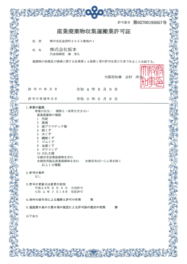 | 大阪府 | 第02700195057号 | H29.06.09 | R9.06.08 |